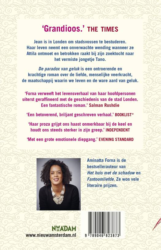Waterloo Bridge, Londen. Een toevallige ontmoeting tussen twee vreemden, Atilla, een Ghanese traumapsychiater en Jean, een Amerikaanse die stadsvossen bestudeert. Wanneer Atilla's neefje vermist blijkt mobiliseert Jean haar netwerk van vrijwilligers die vossen voor haar tellen; samen gaan ze op zoek. Gaandeweg ontvouwt zich tussen Atilla en Jean een bijzondere vriendschap.De paradox van geluk is een aangrijpende roman over instinct, veerkracht en de complexiteit van menselijke relaties. Forna toont ons op geraffineerde wijze de verborgen kanten van een multiculturele metropool, hoe we met elkaar samenleven en de ware aard van geluk.Het huis met de schaduw van Aminatta Forna werd gekozen tot DWDD Boek van de Maand .