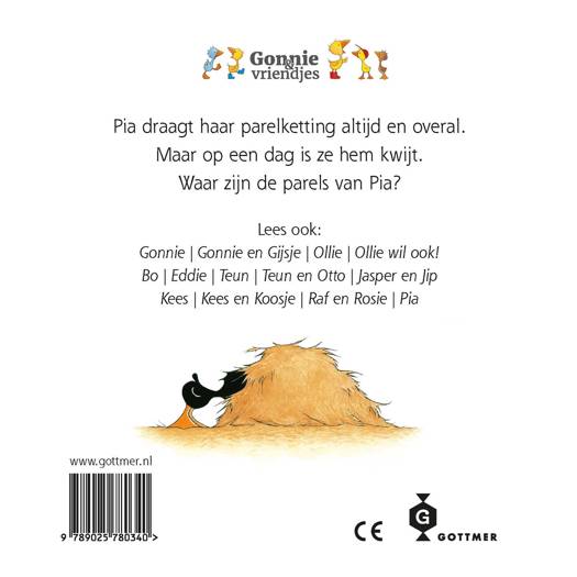 De kinderboekenserie Gonnie & vriendjes van Olivier Dunrea bestaat inmiddels twintig jaar en is nog steeds favoriet bij peuters in Nederland en Vlaanderen. De verhalen over Gonnie en haar vriendjes, uitgevoerd in stevige kartonnen boekjes met lieve illustraties, zijn ideaal voor kleine handjes en geweldig om keer op keer samen te lezen. 'De parels van Pia' en andere verhalen uit de serie zijn een prachtig kraamcadeau en een bron van leesplezier voor peuters. Ontdek ook andere boekjes in de serie, zoals 'Pia', 'Gonnie', 'Bo', en 'Ollie'.