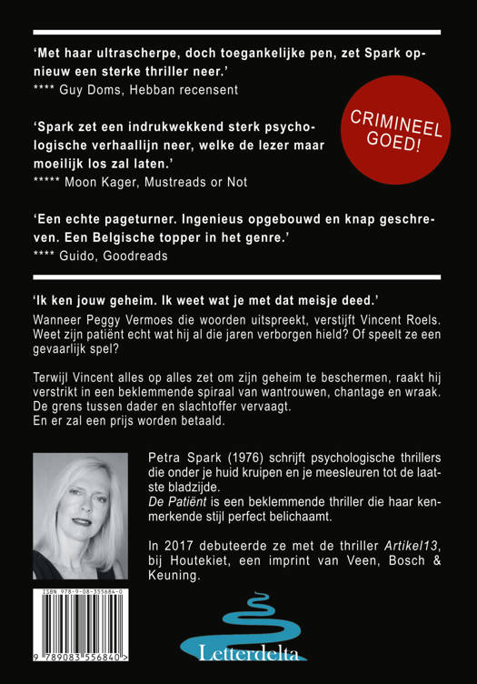 Petra Spark (1976) schrijft psychologische thrillers die onder je huid kruipen en je meesleuren tot de laatste bladzijde.