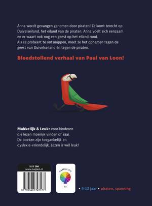 In dit spannende boek probeert Anna te ontsnappen aan piraten én de geest van Duivelseiland. Zal het haar lukken? Het is op AVI E5 en voor kinderen van 9-12 jaar. De serie ‘Makkelijk & Leuk’ is speciaal voor kinderen die lezen moeilijk vinden of saai. Zo krijgen zij weer plezier in lezen. Dyslexievriendelijk!