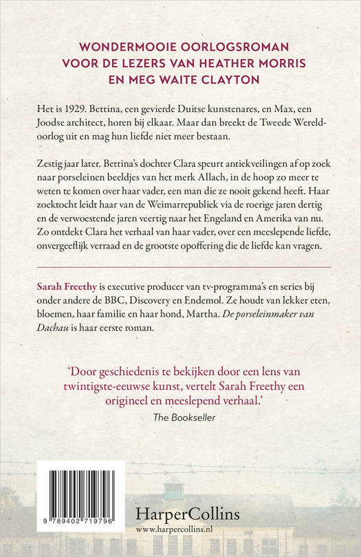 De porseleinmaker van Dachau van Sarah Freethy is een indrukwekkende oorlogsroman over de porseleinen beeldjes van Hitler, en een wereld vol geheimen. Wordt verfilmd.