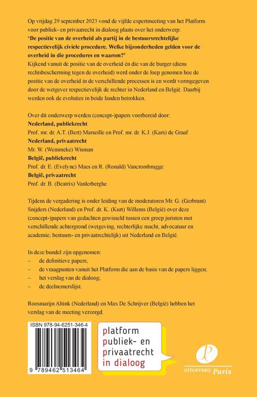Over dit onderwerp werden (concept-)papers voorbereid door: Nederland, publiekrecht Prof. mr. dr. A.T. (Bert) Marseille en Prof. mr. dr. K.J. (Kars) de Graaf Nederland, privaatrecht Mr. W. (Wemmeke) Wisman België, publiekrecht Prof. dr. E. (Evelyne) Maes en R. (Ronald) Vancrombrugge België, privaatrecht Prof. dr. B. (Beatrix) Vanlerberghe