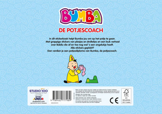 In dit stickerboek helpt Bumba jou om op het potje te gaan. Met grappige stickers van plasjes en drolletjes en een leuk verhaal over Babilu die af en toe nog wel 's een ongelukje heeft. Alle sticker opgeplakt? Dan verdien je een potjesdiploma van Bumba, de potjescoach!