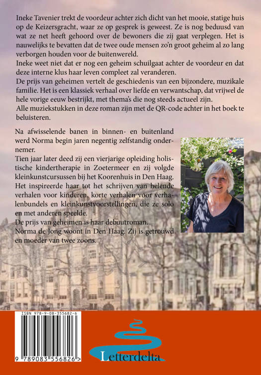 Ineke Tavenier trekt de voordeur achter zich dicht van het mooie, statige huis op de Keizersgracht, waar ze op gesprek is geweest. Ze is nog beduusd van wat ze net heeft gehoord over de bewoners die zij gaat verplegen. Het is nauwelijks te bevatten dat de twee oude mensen zo’n groot geheim al zo lang verborgen houden voor de buitenwereld. Ineke weet niet dat er nog een geheim schuilgaat achter de voordeur en dat deze interne klus haar leven compleet zal veranderen. De prijs van geheimen vertelt de geschiedenis van een bijzondere, muzikale familie. Het is een klassiek verhaal over liefde en verwantschap, dat vrijwel de hele vorige eeuw bestrijkt, met thema’s die nog steeds actueel zijn. Alle muziekstukken in deze roman zijn met de QR-code achter in het boek te beluisteren.
