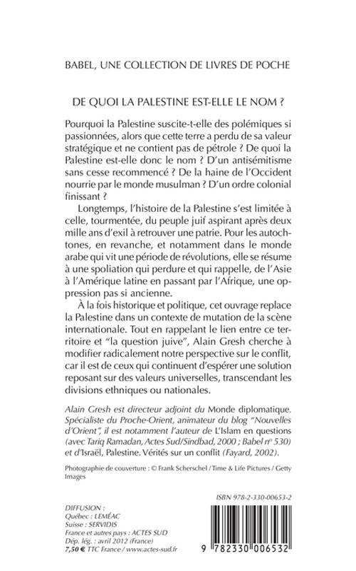 Pourquoi la Palestine suscite-t-elle des polémiques si passionnées, alors que cette terre a perdu de sa valeur stratégique et ne contient pas de pétrole ? De quoi la Palestine est-elle donc le nom ? D'un antisémitisme sans cesse recommencé ? De la haine de l'Occident nourrie par le monde musulman ? D'un ordre colonial finissant ?