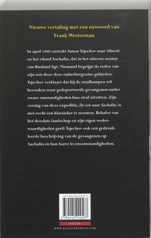In april 1890 vertrekt Anton Tsjechov naar Siberië en het eiland Sachalin, dat in het uiterste oosten van Rusland tussen de Zee van Ochotsk en de Japanse Zee ligt. Niemand begrijpt de reden van zijn reis door deze onherbergzame gebieden. Tsjechov verklaart dat hij de strafkampen wil bezoeken waar gedeporteerde gevangenen onder zware omstandigheden hun straf uitzitten. Zijn verslag van deze expeditie, De reis naar Sachalin, is met recht een klassieker te noemen. Behalve van het desolate landschap en zijn eigen ervaringen geeft Tsjechov ook een gedetailleerde beschrijving van de gevangenen op Sachalin en hun barre levensomstandigheden. Met een nawoord van Frank Westerman.