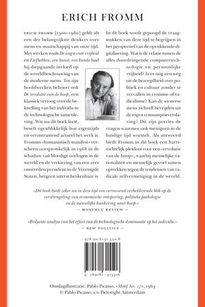 Erich Fromm [1900-1980] geldt als een der belangrijkste denkers over mens en maatschappij van onze tijd. Met werken zoals «De angst voor vrijheid» en «Liefhebben, een kunst, een kunde» had hij diepgaande invloed op het wereldbeeld van de moderne mens. Tot zijn hoofdwerken behoort ook «De revolutie van de hoop», een klassiek vertoog over de beknelling van het individu in de hoogtechnologische samenleving.