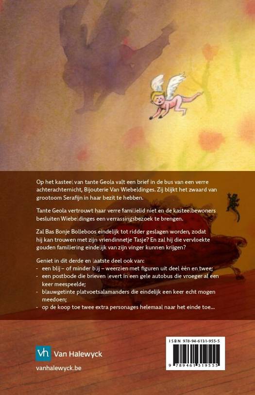 Op het kasteel van tante Geola valt een brief in de bus van een verre achterachternicht, Bijouterie Van Wiebeldinges. Zij blijkt het zwaard van grootoom Serafijn in haar bezit te hebben. Tante Geola vertrouwt haar verre familielid niet en de kasteelbewoners besluiten Wiebeldinges een verrassingsbezoek te brengen.