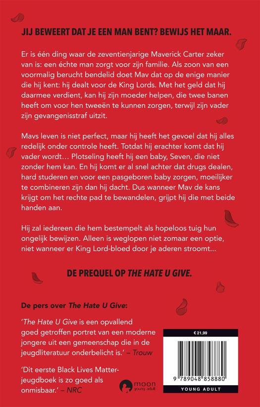 Er is één ding waar de zeventienjarige Maverick Carter zeker van is: een échte man zorgt voor zijn familie. Als zoon van een voormalig berucht bendelid doet Mav dat op de enige manier die hij kent: hij dealt voor de King Lords. Met het geld kan hij zijn moeder helpen, die zich met twee banen te pletter werkt om voor hen te zorgen terwijl zijn vader in de gevangenis zit.
