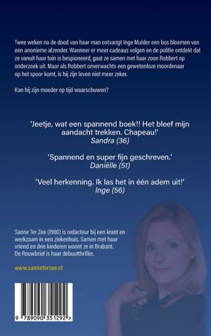 Twee weken na de dood van haar man ontvangt Inge Mulder een bos bloemen van een anonieme afzender. Wanneer er meer cadeaus volgen en de politie ontdekt dat ze vanuit haar tuin is bespioneerd, gaat ze samen met haar zoon Robbert op onderzoek uit. Maar als Robbert onverwachts een gewetenloze moordenaar op het spoor komt, is hij zijn leven niet meer zeker. Kan hij zijn moeder op tijd waarschuwen?