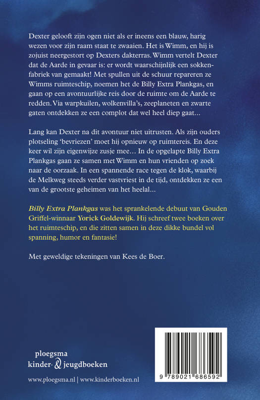 Billy Extra Plankgas was het sprankelende debuut van Gouden Griffel-winnaar Yorick Goldewijk. Hij schreef twee boeken over het ruimteschip, en die zitten samen in deze dikke bundel vol spanning, humor en fantasie!