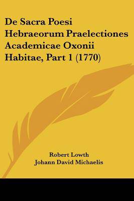 Liber ""De Sacra Poesi Hebraeorum Praelectiones Academicae Oxonii Habitae, Part 1"" auctore Lowth, Roberto, in annum MDCCLXX editus, est opus quod de poesi sacra Hebraeorum tractat. In hoc libro, auctor praefationem scripsit, qua de his quae in opere tractanda sunt, locutus est. In prima parte operis, Lowth de poesi Hebraeorum in genere disserit, et de modo quo poetae Hebraei de Deo et religione loquuntur, agit. Libro hoc, qui ad litterarum Hebraicarum cognitionem pertinet, adhiberi potest.This scarce antiquarian book is a facsimile reprint of the old original and may contain some imperfections such as library marks and notations. Because we believe this work is culturally important, we have made it available as part of our commitment for protecting, preserving, and promoting the world's literature in affordable, high quality, modern editions, that are true to their original work.