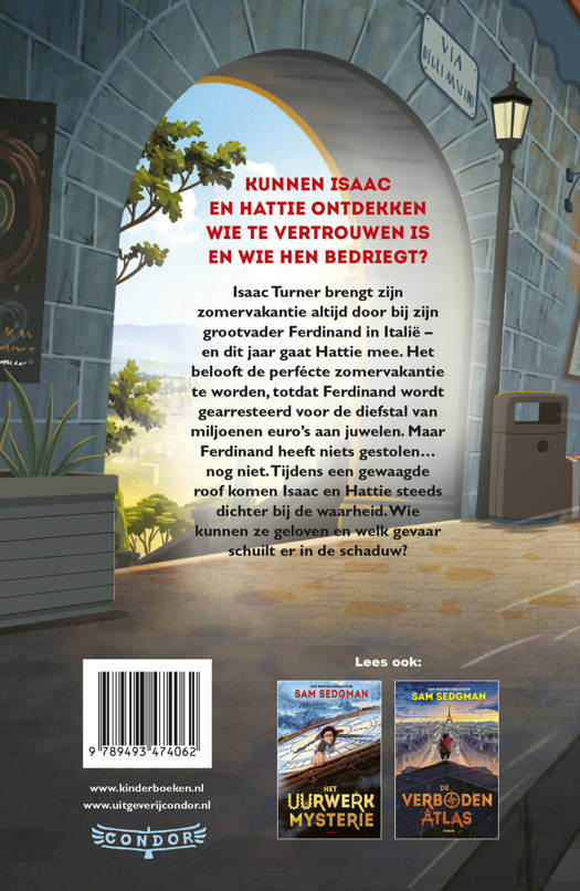 In De schaduwroof, het vervolg op Het uurwerkmysterie en De verboden atlas, beleeft Isaac zijn gevaarlijkste avontuur tot nu toe. Na de spannende mysteries in Londen en Parijs kijkt Isaac uit naar een rustige zomer bij zijn opa Ferdinand in Italië. Dit jaar mag zijn beste vriendin Hattie ook mee, en samen verheugen ze zich op een zonnige vakantie. Maar al snel verandert alles als opa Ferdinand wordt gearresteerd voor het stelen van miljoenen aan juwelen.