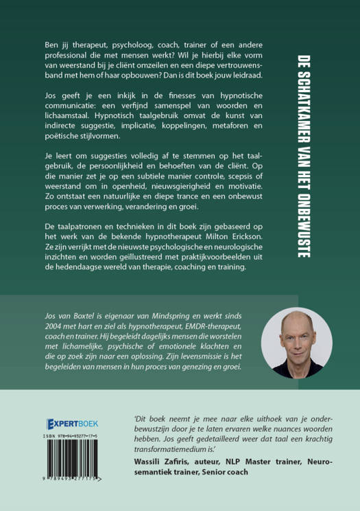 ‘Jos van Boxtel is eigenaar van Mindspring en werkt sinds 2004 met hart en ziel als hypnotherapeut, EMDR-therapeut, coach en trainer. Hij begeleidt dagelijks mensen die worstelen met lichamelijke, psychische of emotionele klachten en die op zoek zijn naar een oplossing. Zijn levensmissie is het begeleiden van mensen in hun proces van genezing en groei.