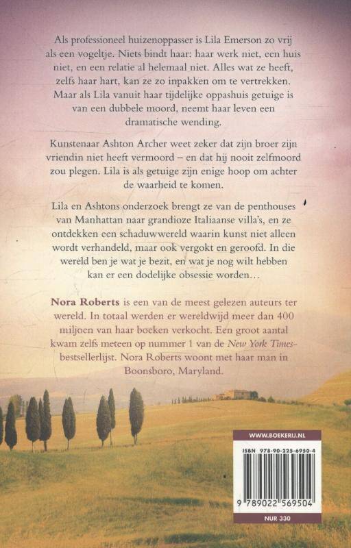 Als professioneel huizenoppasser is Lila Emerson zo vrij als een vogeltje. Niets bindt haar: haar werk niet, een huis niet, en een relatie al helemaal niet. Alles wat ze heeft, zelfs haar hart, kan ze zo inpakken om te vertrekken. Maar als Lila vanuit haar tijdelijke oppashuis getuige is van een dubbele moord, neemt haar leven een dramatische wending. Kunstenaar Ashton Archer weet zeker dat zijn broer zijn vriendin niet heeft vermoord - en dat hij nooit zelfmoord zou plegen. Lila is als getuige zijn enige hoop om achter de waarheid te komen. Lila en Ashtons onderzoek brengt ze van de penthouses van Manhattan naar grandioze Italiaanse villa's, en ze ontdekken een schaduwwereld waarin kunst niet alleen wordt verhandeld, maar ook vergokt en geroofd. In die wereld ben je wat je bezit, en wat je nog wilt hebben kan er een dodelijke obsessie worden...