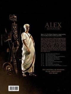 Alex keert terug uit Petra en ziet hoe de Romeinse hoofdstad ten prooi valt aan angst. Bizarre en bloederige moorden in de straten zorgen ervoor dat zelfs de Pretoriaanse garde in paniek slaat. De ene beschuldigt de melaatsen, de ander de oosterlingen, maar Augustus weet dat de waarheid elders ligt. Alex geeft niet toe aan de angst en volgt het spoor van de schimmen in Rome, niet wetend dat hij even gevaarlijk kan worden als zij. Het mysterie, de waanzin en de grootsheid van Rome!