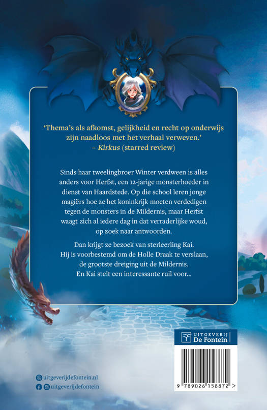 De school op de rand van Sageland van Heather Fawcett (Ember en de ijsdraken, Het eiland van Verloren Woorden), is het ultieme boek voor lezers vanaf 10 jaar die van magie en avontuur houden! En natuurlijk voor alle fans van Nevermoor en Bovenwereld.Sinds haar tweelingbroer Winter verdween is alles anders voor Herfst, een 12-jarige monsterhoeder in dienst van Haardstede. Op die school leren jonge magiërs hoe ze het koninkrijk moeten verdedigen tegen de monsters in de Mildernis, maar Herfst waagt zich al iedere dag in dat verraderlijke woud, op zoek naar antwoorden. Dan krijgt ze bezoek van sterleerling Kai. Hij is voorbestemd om de Holle Draak te verslaan, de grootste dreiging uit de Mildernis. En Kai stelt een interessante ruil voor…De school op de rand van Sageland verschijnt in de reeks Magische mysteries.