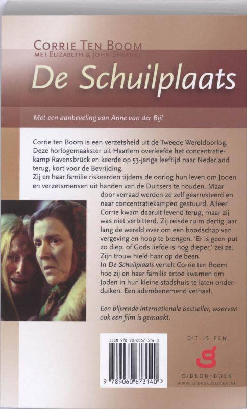 Corrie ten Boom is een verzetsheld uit de Tweede Wereldoorlog. Deze horlogemaakster uit Haarlem overleefde het concentratiekamp Ravensbrück en keerde op 53-jarige leeftijd naar Nederland terug, kort voor de Bevrijding. Zij en haar familie riskeerden tijdens de oorlog hun leven om Joden en verzetsmensen uit handen van de Duitsers te houden. Maar door verraad werden ze zelf gearresteerd en naar concentratiekampen gestuurd. Alleen Corrie kwam daaruit levend terug, maar zij was niet verbitterd. Zij reisde ruim dertig jaar lang de wereld over om een boodschap van vergeving en hoop te brengen. Er is geen put zo diep, of Gods liefde is nog dieper, zei ze. Zijn trouw hield haar op de been. In De Schuilplaats vertelt Corrie ten Boom hoe zij en haar familie ertoe kwamen om Joden in hun kleine stadshuis te laten onderduiken. Een adembenemend verhaal.