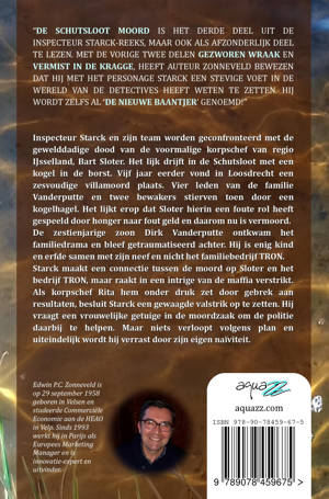 "DE SCHUTSLOOT MOORD IS HET DERDE DEEL UIT DE INSPECTEUR STARCK-REEKS, MAAR OOK ALS AFZONDERLIJK DEEL TE LEZEN. MET DE VORIGE TWEE DELEN GEZWOREN WRAAK EN VERMIST IN DE KRAGGE, HEEFT AUTEUR ZONNEVELD BEWEZEN DAT HIJ MET HET PERSONAGE STARCK EEN STEVIGE VOET IN DE WERELD VAN DE DETECTIVES HEEFT WETEN TE ZETTEN. HIJ WORDT ZELFS AL 'DE NIEUWE BAANTJER' GENOEMD!"