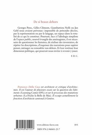 La discrimination fondamentale entre dedans et dehors permet de définir deux types d’espaces distincts. De restituer l’importance de la perception des composantes du milieu. D’y redéployer les glossaires, de débuter le travail de l’observation et de l’enquête, de laisser s’installer des processus, des frictions. D’y accueillir des fictions. Les dehors peuvent être ouverts ou interdits. Mais aussi clos, ou couverts. Ils peuvent mêler, plus ou moins distinctement, des domanialités publiques ou privées. Ils ne cessent d’évoluer au cours du temps, de l’histoire des cultures, des changements politiques.