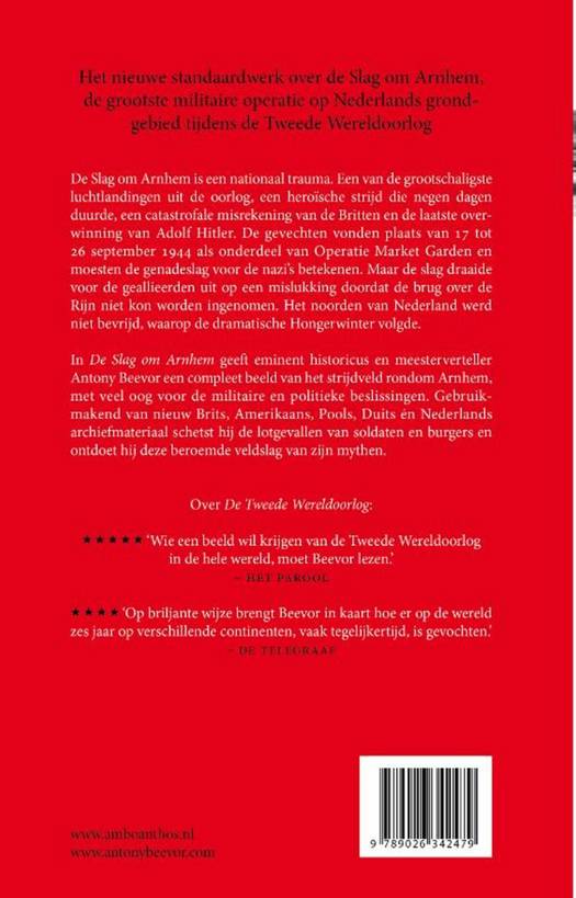 In De Slag om Arnhem geeft eminent historicus en meesterverteller Antony Beevor een compleet beeld van het strijdveld rondom Arnhem, met veel oog voor de militaire en politieke beslissingen. Gebruikmakend van nieuw Brits, Amerikaans, Pools, Duits én Nederlands archiefmateriaal schetst hij de lotgevallen van soldaten en burgers en ontdoet hij deze beroemde veldslag van zijn mythen.