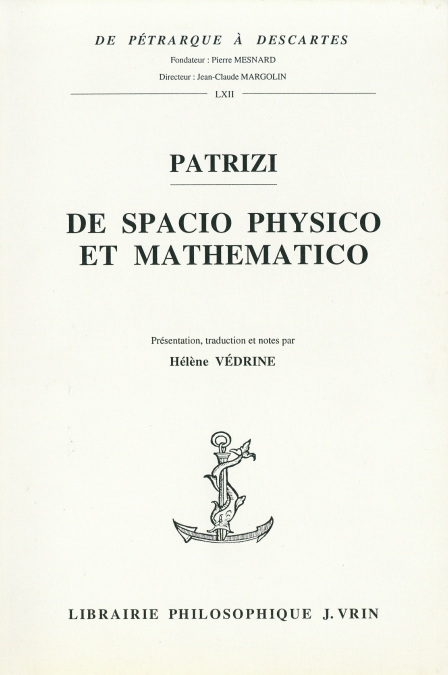 Le De spacio physico et mathematico a été publié par Patrizi en 1587 à Ferrare et reproduit, avec quelques explications, dans la Nova de universis philosophia dont la première édition est datée de Ferrare 1591 et la seconde de Venise 1593. Consacré à l’espace, ce texte s’insère dans le travail critique poursuivi par les philosophes de la Renaissance (et en particulier les Platoniciens) pour dépasser les principes de la cosmologie aristotélicienne. Point d’aboutissement d’un mouvement conduisant à l’infinitisation de l’univers, à l’abandon des hiérarchies et du dualisme traditionel, ce petit livre, dans ses audaces et ses limites, traduit assez fidèlement l’état d’un certain nombre de recherches philosophiques de la fin du xvie. Il montre que s’il fut relativement aisé de formuler l’idée d’un espace vide et infini, il fut part contre difficile de déterminer les rapports de la pensée mathématique et de la pensée physique : le réalisme du point et de la ligne, hérité de la tradition pythagoricienne, élève une barrière infranchissable devant toute recherche neuve sur la division du continu à l’infini. Comme ces faiblesses ne sont pas propres à Patrizi - nous les avons retrouvées ailleurs chez Bruno -, elles doivent être considérées comme des limites d’une certaine philosophie, novatrice et critique en cosmologie, naïvement réaliste en géométrie et en algèbre.