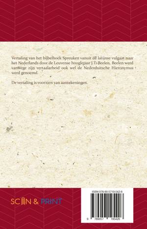 Vertaling van het bijbelboek Spreuken vanuit de latijnse vulgaat naar het Nederlands door de Leuvense hoogleraar J.T. Beelen. Beelen werd vanwege zijn vertaalarbeid ook wel de Nederduitsche Hieronymus werd genoemd.