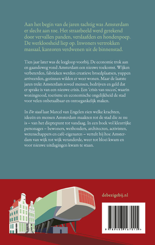 In De stad laat Marcel van Engelen zien welke krachten, ideeën en mensen Amsterdam maakten tot de stad die het nu is – van het dieptepunt tot vandaag. In een boek vol kleurrijke personages – wethouders, architecten, activisten, wetenschappers, bewoners en café-eigenaren – vertelt hij hoe Amsterdam van wijk tot wijk veranderde, weer tot bloei kwam en voor nieuwe uitdagingen kwam te staan.