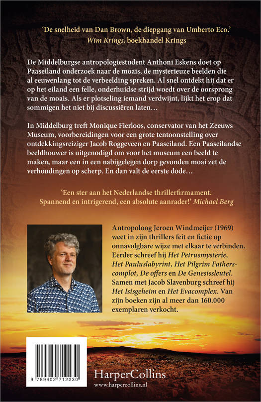 De Middelburgse antropologiestudent Anthoni Eskens doet op Paaseiland onderzoek naar de moais, de mysterieuze beelden die al eeuwenlang tot de verbeelding spreken. Al snel ontdekt hij dat er op het eiland een felle, onderhuidse strijd woedt over de oorsprong van de moais. Als er plotseling iemand verdwijnt, lijkt het erop dat sommigen het niet bij discussiëren laten…