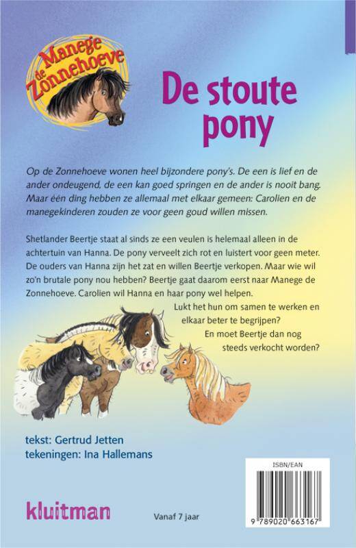 Shetlander Beertje staat al sinds ze een veulen is helemaal alleen in de achtertuin van Hanna. De pony verveelt zich rot en luistert voor geen meter. De ouders van Hanna zijn het zat en willen Beertje verkopen. Maar wie wil zo’n brutale pony nou hebben? Beertje gaat daarom eerst naar Manege de Zonnehoeve. Carolien wil Hanna en haar pony wel helpen. Lukt het hun om samen te werken en elkaar beter te begrijpen? En moet Beertje dan nog steeds verkocht worden?