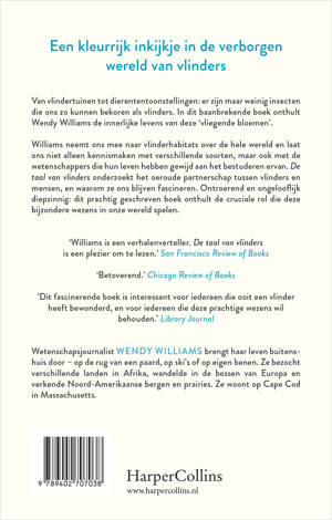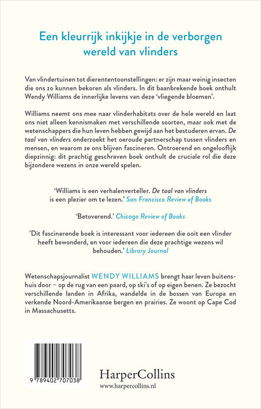 Williams neemt ons mee naar vlinderhabitats over de hele wereld en laat ons niet alleen kennismaken met verschillende soorten, maar ook met de wetenschappers die hun leven hebben gewijd aan het bestuderen ervan. De taal van vlinders onderzoekt het oeroude partnerschap tussen vlinders en mensen, en waarom ze ons blijven fascineren. Ontroerend en ongelooflijk diepzinnig: dit prachtig geschreven boek onthult de cruciale rol die deze bijzondere wezens in onze wereld spelen.
