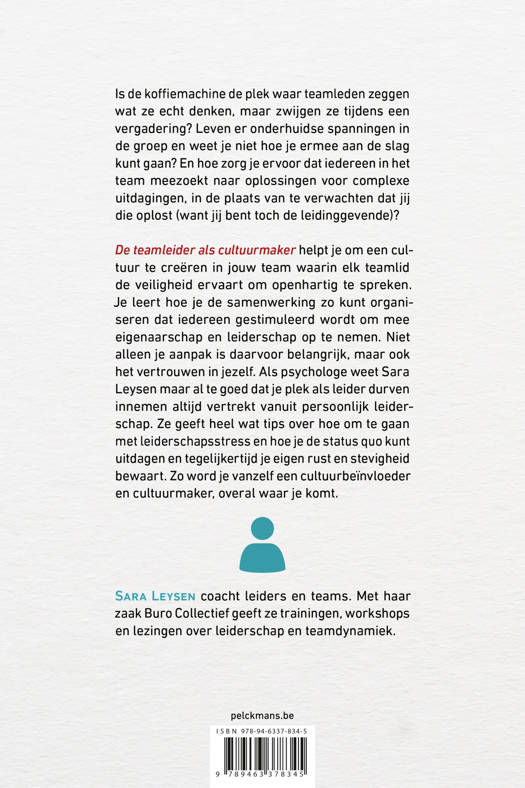 De teamleider als cultuurmaker helpt je om een cultuur te creëren in het team waar elk teamlid de veiligheid ervaart om open te spreken. Je leert hoe je de samenwerking op zo’n manier kunt organiseren dat iedereen gestimuleerd wordt om mee eigenaarschap en leiderschap op te nemen. Niet alleen je aanpak is daarin belangrijk, maar ook het vertrouwen in jezelf. Als psychologe weet Sara Leysen maar al te goed dat je plek als leider durven innemen altijd vertrekt vanuit persoonlijk leiderschap. Ze geeft heel wat tips over hoe om te gaan met leiderschapsstress en hoe je de status quo kunt uitdagen en tegelijkertijd je eigen rust en stevigheid bewaart. Zo word je vanzelf een cultuurbeïnvloeder en cultuurmaker, overal waar je komt.