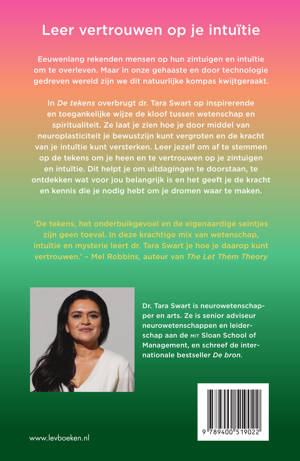 In De tekens overbrugt dr. Tara Swart op inspirerende en toegankelijke wijze de kloof tussen wetenschap en spiritualiteit. Ze laat je zien hoe je door middel van neuroplasticiteit je bewustzijn kunt vergroten en de kracht van je intuïtie kunt versterken. Leer jezelf om af te stemmen op de tekens om je heen en te vertrouwen op je zintuigen en intuïtie. Dit helpt je om uitdagingen te doorstaan, te ontdekken wat voor jou belangrijk is en het geeft je de kracht en kennis die je nodig hebt om je dromen waar te maken.