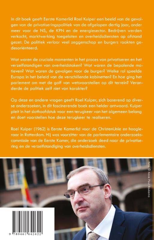 In dit boek geeft Eerste Kamerlid Roel Kuiper een beeld van de gevolgen van de privatiseringspolitiek van de afgelopen dertig jaar, onder meer voor de NS, de KPN en de energiesector. Bedrijven werden verkocht, marktwerking toegelaten en overheidsdiensten op afstand gezet. De politiek verloor veel zeggenschap en burgers raakten gedesoriënteerd.