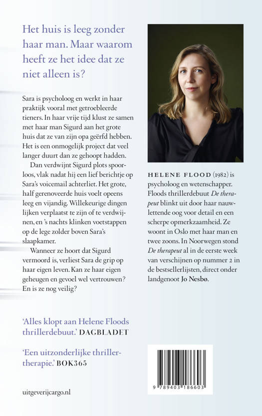 Dan verdwijnt Sigurd plots spoorloos, vlak nadat hij een lief berichtje op Sara’s voicemail achterliet. Het grote, half gerenoveerde huis voelt opeens leeg en vijandig. Willekeurige dingen lijken verplaatst te zijn of te verdwijnen, en ’s nachts klinken voetstappen op de lege zolder boven Sara’s slaapkamer.