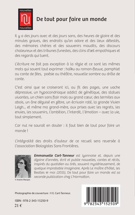Il y a des jours avec et des jours sans, des heures de gloire et des minutes graves, des mémoires chéries et des souvenirs maudits. Au fil des pages, se croiseront ici une vache dépressive, un hypocondriaque addict de génétique, des statues vivantes, un chien sans flair mais au grand coeur, des termites aux abois, un âne déguisé en zèbre, un écrivain raté, la grande Vivien Leigh... et même ma grand-mère, aux prises avec les regrets, les envies, les souvenirs, l'ambition, l'interdit, l'émotion avec la vie, tout simplement. Car nul ne saurait en douter : il faut bien de tout pour faire un monde !