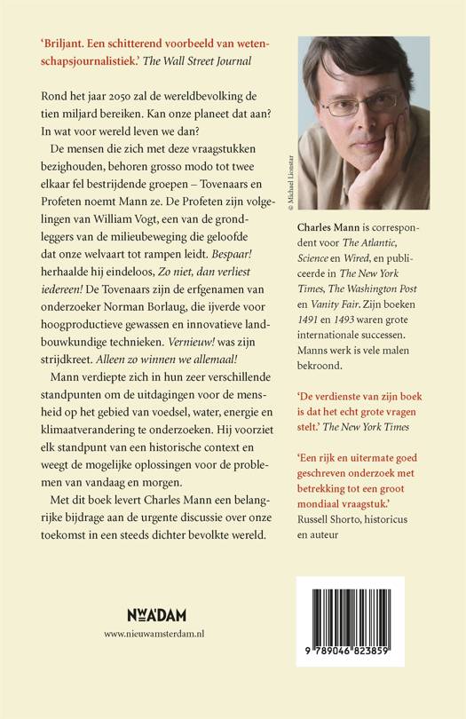 Over veertig jaar zal de wereldbevolking de tien miljard bereiken. Dit gegeven legt volgens Mann twee radicaal verschillende type mensen bloot – de profeten en de tovenaars. De profeten zijn de volgelingen van William Vogt, een van de grondleggers van de milieubeweging. Hij geloofde dat we meer consumeren dan de wereld produceert en zijn mantra was: Bespaar! De tovenaars zijn de erfgenamen van Norman Borlaug, grondlegger van de massaproductie van gewassen. Vernieuw! was zijn strijdkreet. Op toonaangevende wijze voorziet Mann deze twee standpunten van een historische context en weegt hij de mogelijkheden. Daarmee levert hij een onmisbare bijdrage aan de discussie over de toekomst van een steeds dichter bevolkte wereld.