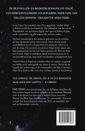 Hoewel Nica en Rigel een verleden delen vol verdriet en gebrek aan liefde, is het onmogelijk om samen te wonen. Vooral als de legende hen achtervolgt en de tranenmaker echt lijkt te bestaan. Maar Nica heeft er alles voor over om haar droom te beschermen, en alleen als ze haar angsten onder ogen komt zal ze haar vleugels kunnen uitslaan, zoals de vlinder waarnaar ze vernoemd is.
