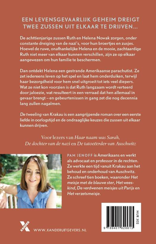 In De tweeling van Krakau van Pam Jenoff moeten de achttienjarige zussen Ruth en Helena Nowak, onder de schaduw van de nazi-bezetting, voor hun broertjes en zusjes zorgen. De constante dreiging maakt iedereen in hun dorp tot spion, buren worden tegen elkaar opgezet. Hoewel de ruwe, onafhankelijke Helena en de mooie, zachtaardige Ruth niet meer van elkaar kunnen verschillen, zijn ze op elkaar aangewezen om de familie te beschermen tegen alle dreigingen van buitenaf.