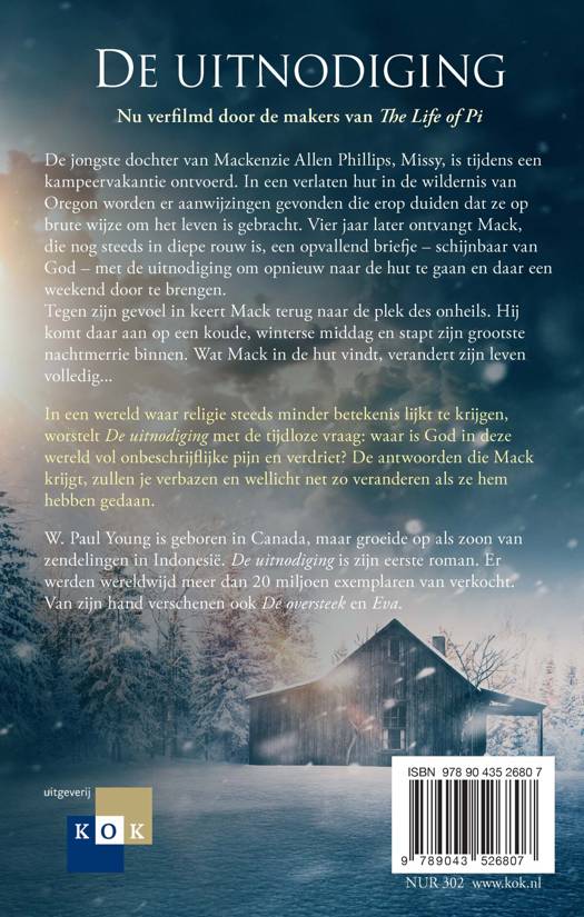 Mack's jongste dochter, Missy, is tijdens een vakantie met haar familie ontvoerd. In een verlaten hut in de wildernis van Oregon is bewijs gevonden dat ze op brute wijze om het leven is gebracht. De dader is nooit gevonden en het verdriet en gemis worden door Mack en zijn gezin nog elke dag gevoeld. Vier jaar later ontvangt Mack, die nog steeds in diepe rouw is, een opvallend briefje, schijnbaar van God, met de uitnodiging om terug naar de hut te gaan. Tegen zijn gevoel in gaat hij terug naar de plek des onheils. Hij komt daar aan op een koude, winterse middag en stapt zijn grootste nachtmerrie weer binnen. Wat Mack in de hut vindt, verandert zijn leven volledig... De uitnodiging worstelt met de tijdloze vraag: Waar is God in deze wereld vol pijn en verdriet? Dit boek heeft de potentie om voor onze generatie te doen wat The Pilgrim's Progress van John Bunyan heeft gedaan voor zijn generatie. Zo goed is het! - Eugene Peterson De uitnodiging is de meest indringende roman die ik in jaren heb gelezen - Michael W. Smith