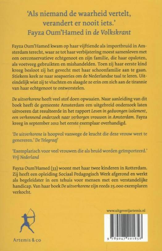 In De uitverkorene laat Fayza zien welke impact vrijheidsberoving, dwang en mishandeling hebben gehad op haar psychische en fysieke gezondheid. Door haar kracht, intelligentie en de speling van het lot wist zij zich aan haar situatie te ontworstelen en kan zij nu haar verhaal vertellen.