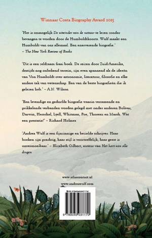 Alexander von Humboldt (1769-1859) was een moedige ontdekkingsreiziger en de bekendste wetenschapper van zijn tijd. Hij had een grote honger naar avontuur en ontdekkingen, hij beklom de hoogste vulkaan ter wereld, reisde door Siberië, waar de bevolking aan miltvuur leed, en deed onderzoek in de meest afgelegen gebieden. Met zijn ideeën was hij zijn tijd ver vooruit. Andrea Wulf beschrijft zijn gedurfde expedities en geeft op toegankelijke wijze inzicht in zijn baanbrekende onderzoek naar de vorming van het landschap op verschillende continenten. Humboldt wist toen al dat menselijk ingrijpen effect heeft op het klimaat. Zijn gedachten werden aangescherpt door zijn vriendschappelijke relaties met Goethe en Jefferson, en vormden een inspiratiebron voor grootheden uit diverse disciplines, onder wie Darwin, Bolívar, Wordsworth en Thoreau.