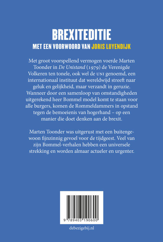 Met groot voorspellend vermogen voerde Marten Toonder in De Unistand (1979) de Verenigde Volkeren ten tonele, ook wel de uni genoemd, een internationaal instituut dat wereldwijd streeft naar geluk en gelijkheid, maar verzandt in geruzie. Wanneer door een samenloop van omstandigheden uitgerekend heer Bommel model komt te staan voor alle burgers, komen de Rommeldammers in opstand tegen de bemoeienis van hogerhand – op een manier die doet denken aan de brexit.