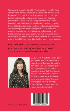 In ‘De vader van Grace’ ontvouwt Carolijn Visser het verhaal van de familie Comijs. Wanneer de zesjarige Carolijn voor het eerst bij haar schoolvriendinnetje Grace Comijs thuiskomt, zit daar in de huiskamer een zwarte man: de vader van Grace. Carolijn is stomverbaasd. Jaren later zal ze samen met Grace de geschiedenis van de familie Comijs ontraadselen. Na de dood van haar beide ouders vond Grace een stapel brieven in een hutkoffer: berichten van haar Indo-Afrikaanse vader aan een veel jonger Zeeuws meisje dat haar moeder zou worden. ‘De vader van Grace’ is het verhaal over een grote liefde, over een jong gezin dat uiteindelijk Indonesië moet ontvluchten en terechtkomt in een onbewoonbaar verklaarde woning in Middelburg, om daar het leven weer op te bouwen.