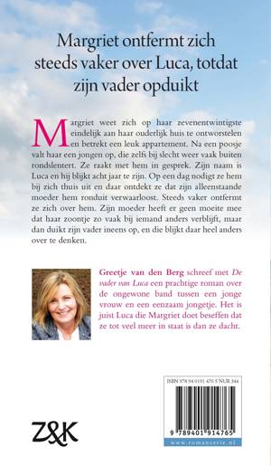 In 'De vader van Luca' van Greetje van den Berg valt het Margriet op dat er vaak een jongen in zijn eentje buiten rondslentert. Het blijkt de achtjarige Luca te zijn, die door zijn moeder wordt verwaarloosd. Margriet ontfermt zich steeds vaker over hem. Maar wie is de vader van Luca? Greetje van den Berg neemt je in deze roman mee op die zoektocht, die veel meer oplevert dan een antwoord op die simpele vraag alleen.