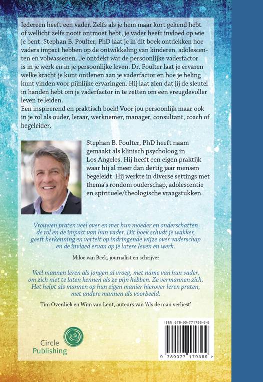 Iedereen heeft een vader. Zelfs als je hem maar kort gekend hebt of wellicht zelfs nooit ontmoet hebt, je vader heeft invloed op wie je bent. Stephan B. Poulter, PhD laat je in dit boek ontdekken hoe vaders impact hebben op de ontwikkeling van kinderen, adolescenten en volwassenen. Je ontdekt wat de persoonlijke vaderfactor is in je werk en in je persoonlijke leven. Dr. Poulter laat je ervaren welke kracht je kunt ontlenen aan je vaderfactor en hoe je heling kunt vinden voor pijnlijke ervaringen. Hij laat zien dat jij de sleutel in handen hebt om je vaderfactor in te zetten om een vreugdevoller leven te leiden. Een inspirerend en praktisch boek! Voor jou persoonlijk maar ook in je rol als ouder, leraar, werknemer, manager, consultant, coach of begeleider.