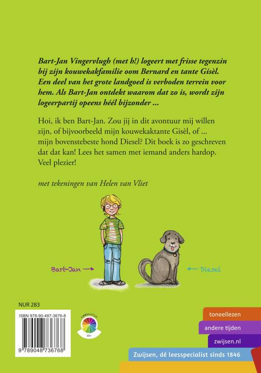 Bart-Jan Vingervlugh (met h!) logeert met frisse tegenzin bij zijn kouwe kakfamilie oom Bernard en tante Madelief. Een deel van het grote landgoed is verboden terrein voor hem. Als Bart-Jan ontdekt waarom dat zo is, wordt zijn logeerpartij opeens héél bijzonder ... en krijgt hij voor oom en tante een zuur staartje. Hoi, ik ben Bart-Jan. Zou jij in dit avontuur mij willen zijn, of bijvoorbeeld mijn kouwe kak-tante Madelief, offe ... de stoere ridder Rammerop? Dit boek is zo geschreven dat dat kan! Verdeel de rollen en lees om de beurt voor.