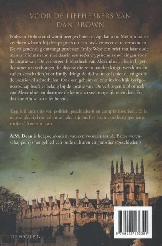 Professor Holmstrand wordt neergeschoten in zijn kantoor. Met zijn laatste krachten scheurt hij drie pagina's uit een boek en weet ze te verbranden. De volgende dag ontvangt professor Emily Wess een brief van haar oude mentor Holmstrand met daarin een reeks cryptische aanwijzingen voor de locatie van 'De verborgen bibliotheek van Alexandrië'. Hierin liggen documenten verborgen die degene die ze in handen krijgt, wereldmacht zullen verschaffen. Voor Emily dringt de tijd want ze is niet de enige die de locatie wil achterhalen. Ook een geheim en zeer invloedrijk kerkgenootschap heeft er belang bij de locatie van 'De verborgen bibliotheek van Alexandrië' en daarmee de kennis zo snel mogelijk te vinden. En daartoe zijn ze tot alles bereid...