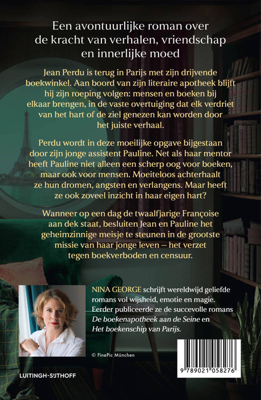 Jean Perdu is terug in Parijs met zijn drijvende boekwinkel. Aan boord van zijn literaire apotheek blijft hij zijn roeping volgen: mensen en boeken bij elkaar brengen, in de vaste overtuiging dat elk verdriet van het hart of de ziel genezen kan worden door het juiste verhaal.