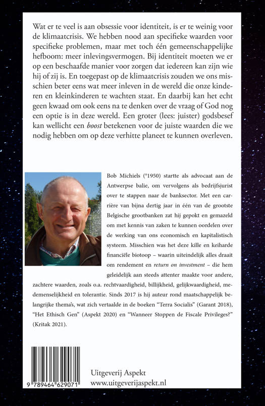 Wat er te veel is aan obsessie voor identiteit, is er te weinig voor de klimaatcrisis. We hebben nood aan specifieke waarden voor specifieke problemen, maar met toch één gemeenschappelijke hefboom: meer inlevingsvermogen. Bij identiteit moeten we er op een beschaafde manier voor zorgen dat iedereen kan zijn wie hij of zij is. En toegepast op de klimaatcrisis zouden we ons misschien beter eens wat meer inleven in de wereld die onze kinderen en kleinkinderen te wachten staat. En daarbij kan het echt geen kwaad om ook eens na te denken over de vraag of God nog een optie is in deze wereld. Een groter (lees: juister) godsbesef kan wellicht een boost betekenen voor de juiste waarden die we nodig hebben om op deze verhitte planeet te kunnen overleven.
